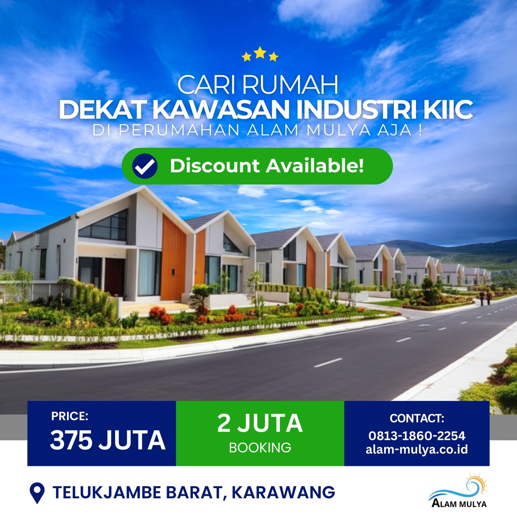 Perumahan Alam Mulya berada di lokasi yang sangat strategis, hanya beberapa menit dari Kawasan Industri KIIC (Karawang International Industrial City). Posisi ini memberikan banyak keuntungan, terutama bagi para pekerja industri, profesional muda, maupun investor properti.